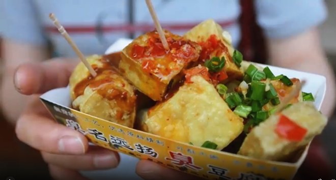 Cận cảnh một hàng đậu phụ thối tại một khu chợ ở Đài Loan.
