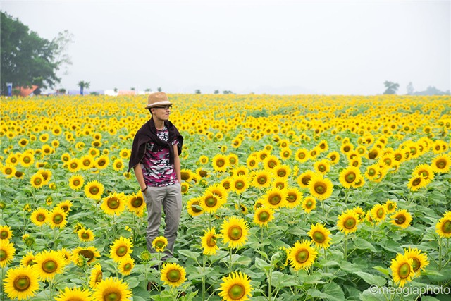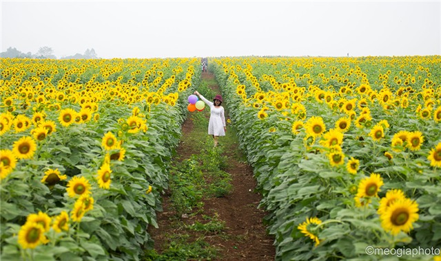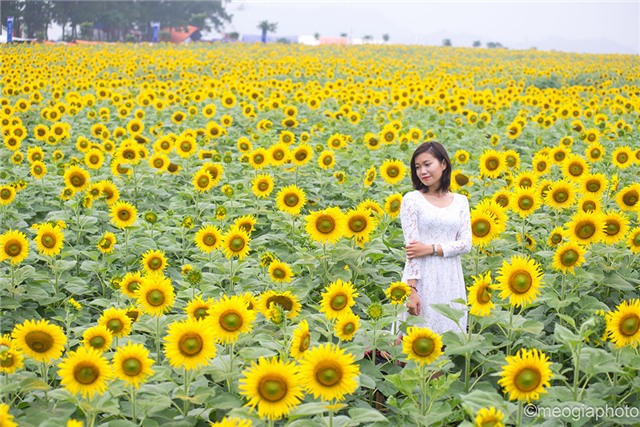 An để chụp ảnh cùng hoa hướng dương. Quả thật những cánh đồng hoa hướng dương với diện tích tới hàng trăm héc-ta khi nở đồng loạt vàng rực khiến cho ai cũng phải xiêu lòng.