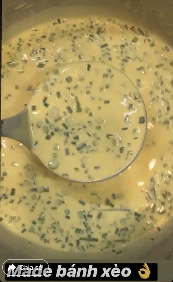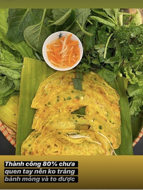 Món bánh xèo tự làm, cô cho rằng thành công 80%.