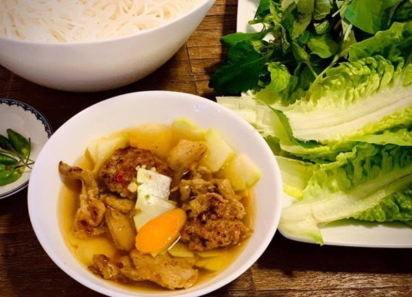 Mỹ Lệ giới thiệu về món bún bò của mình: "Ngon từng miếng thịt ngọt từng miếng rau!"