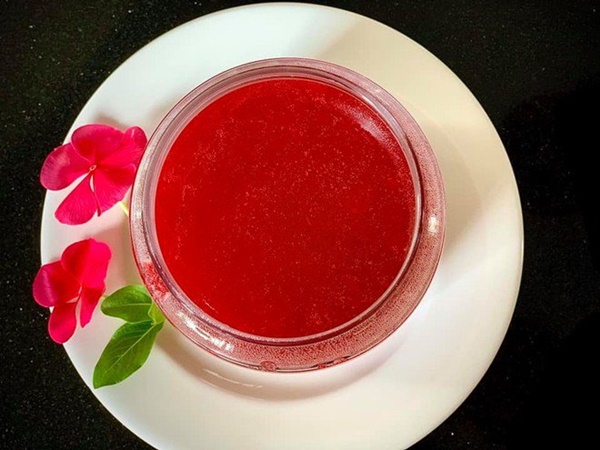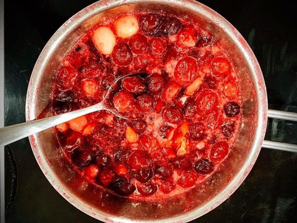 Thành quả nấu siro của Mỹ Lệ rất hấp dẫn. Cô chia sẻ với bạn bè, cây siro làm kiểng rất đẹp, trái màu đỏ để nấu siro tự nhiên, tránh dùng nước siro bên ngoài có thể có nhiều phẩm màu.