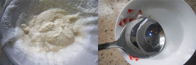 Lọc lại sữa đậu nành qua một tấm vải, bỏ phần bã. Hòa tan 3g đường nho với 20ml nước lọc