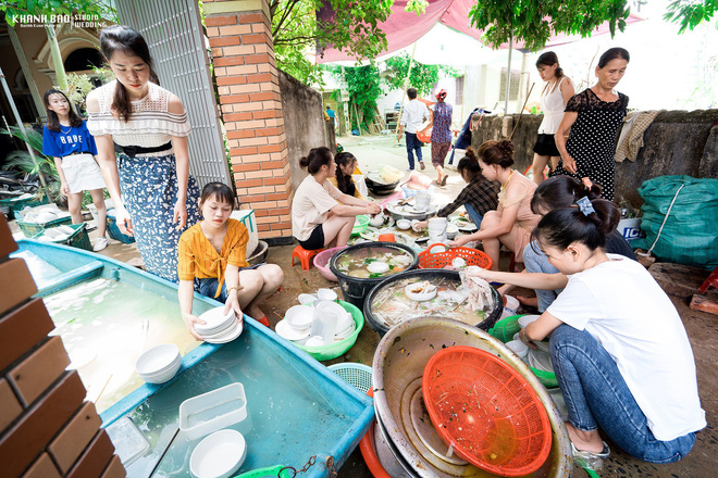 Nguyễn Thị Mai Thi (SN 1998) - một cô gái trong hội chị em cho biết đám cưới trên diễn ra vào trưa nay (23/6) tại Nghệ An. Nhóm gồm 8 cô gái là bạn thân trong xóm của cô dâu từ thuở nhỏ. Người này cho biết vì hôm nay nắng nóng nên cả nhóm vào giúp cô dâu rửa bát cho nhanh.