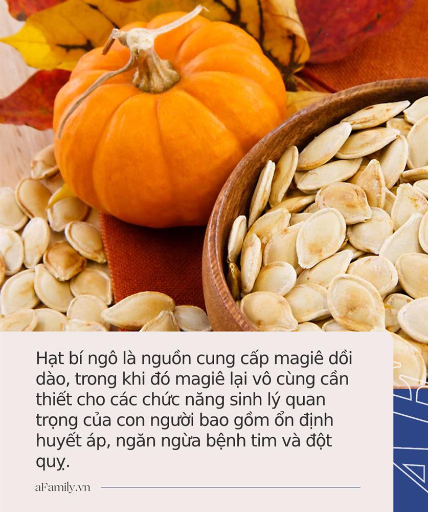 - Tốt cho tim mạch: Hạt bí ngô là nguồn cung cấp magiê dồi dào, trong khi đó magiê lại vô cùng cần thiết cho các chức năng sinh lý quan trọng của con người bao gồm ổn định huyết áp, ngăn ngừa bệnh tim và đột quỵ.