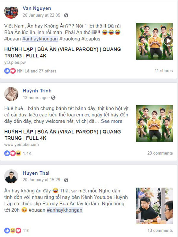Bắt nguồn từ 1 chiếc MV chuẩn phong cách Huỳnh Lập - Bùa Ăn, #ănhaykhôngăn trở thành câu nói có sức ám ảnh đến tất cả mọi người trong mùa Tết. Chỉ sau 24 giờ lên sóng, Bùa Ăn đã thu về 1,8 triệu views và hơn 35 ngàn likes trên Youtube.