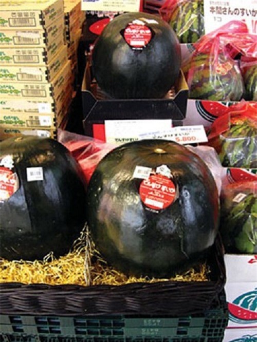 Dưa hấu vuông (Nhật Bản), 200 USD/quả: Giá bán dưa hấu vuông tại Nhật là khoảng 200 USD. Tuy nhiên, ở Moscow, những người Nga giàu có đang mua loại trái cây đặc biệt này với giá lên đến 800 USD.