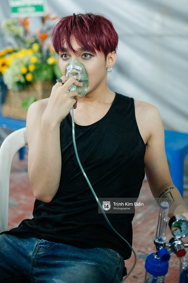 Sơn Tùng trong hậu trường liveshow năm 2015 đã phải thở oxi để giữ sức khoẻ hoàn thành hết show diễn.