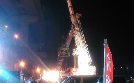 Máy bay của TransAsia lao qua cầu trước khi rơi xuống sông ngày 4/2. Ảnh: Twitter |
