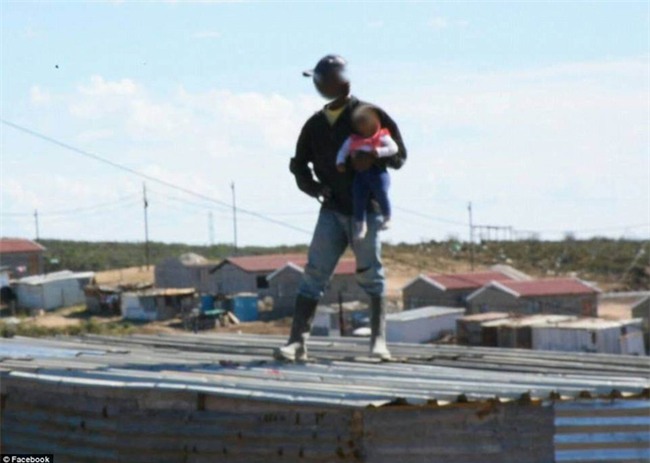 Người đàn ông 38 tuổi đã đưa đứa bé 6 tháng tuổi lên mái nhà của căn lều xập xệ để phản đối việc hàng chục căn lều khác tại thị trấn ở Kwadwesi, gần Port Elizabeth trên bờ biển phía đông Nam Phi đang xếp hàng chuẩn bị chờ phá huỷ. Sau khi thông tin này được báo cáo, các cảnh sát đã nhanh chóng đến hiện trường và chuẩn bị miếng lót dưới đất. Bên cạnh đó, họ cũng sắp xếp chuyên gia đàm phán bước lên mái nhà để nói chuyện với người đàn ông kia khi thấy anh đang treo lủng lẳng đứa bé, chỉ cần buông tay thì có thể rớt ngay xuống đất.