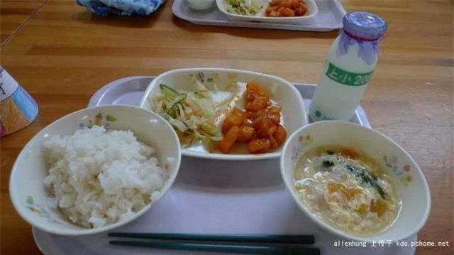 Bạn nhỏ này vừa thắng được bình sữa bò thứ hai, uống xong bạn bỏ vào trong khay thức ăn của mình. Những chi tiết nhỏ này cho chúng tôi thấy học sinh Nhật Bản đã được giáo dục rất nghiêm túc về vấn đề coi trọng những tiểu tiết trong cuộc sống. Uống sữa xong, các bình sữa đều được để nằm xuống, như thế này thì khi bê khay cơm đi bình sẽ không bị đổ.