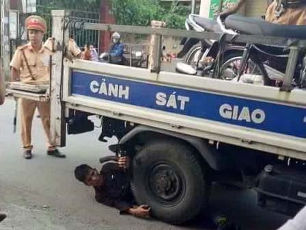 Nam thanh niên nằm ôm bánh xe CSGT ăn vạ bị phạt hơn 6 triệu đồng
