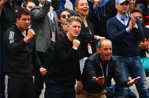Bastian Schweinsteiger (giữa) luôn có mặt cổ vũ hết mình cho cô bạn gái xinh đẹp Ana Ivanovic