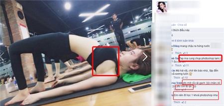 Mọi người cho rằng vì muốn "níu giữ" hình ảnh trước công chúng nên ở đời thường, 'bà mẹ nhí' cũng phải 'chỉnh sửa' thân hình. Tuy nhiên, có vẻ như do quá tay nên công nghệ đã phản chủ khi biến thân hình của cô thành "dị dạng" với đôi chân cộc lệch bên to bên bé, còn ngực thì phần lồi phần lõm không đúng vị trí: "Tập Yoga mà cũng chụp photoshop làm gì vậy em?", hay "Phottoshop mờ cả cái gạch, chân gì mà kỳ quá", Có bạn còn khuyên Phương Trinh nên đi học một khóa Photoshop: "photoshop tệ quá, em nên đi học một khóa đi".