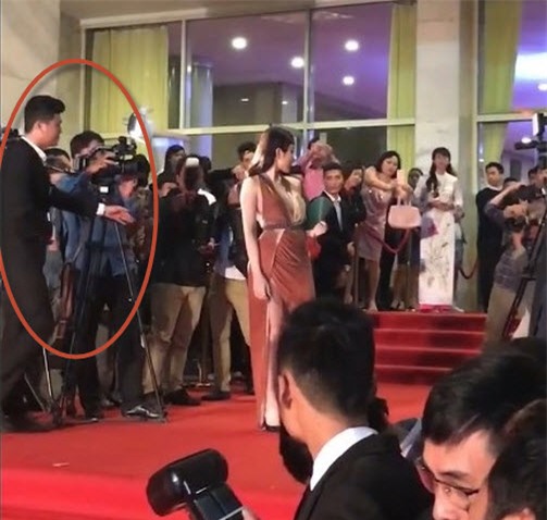 Đại diện BTC phải cử 1 nhân viên an ninh "nhắc khéo" nữ diễn viên. Ban đầu, nhân viên an ninh tỏ ra khá ngại ngùng, phải mất vài phút, anh mới tiến tới và lịch sự mời "Bà mẹ nhí" rời khỏi thảm đỏ, di chuyển vào bên trong hội trường.