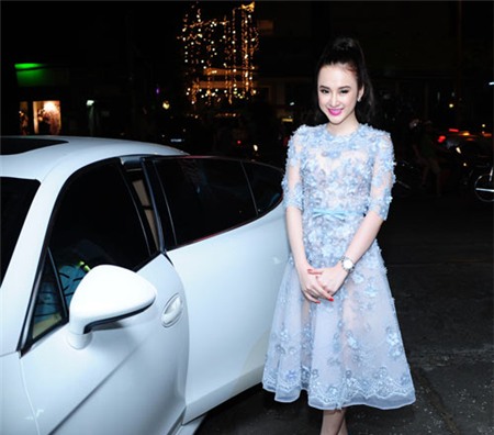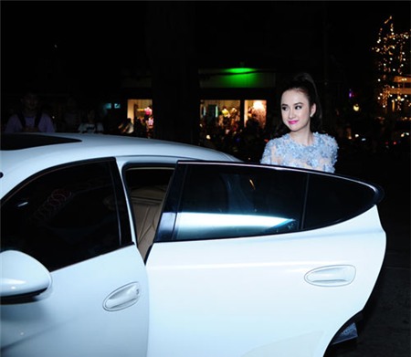 Phương Trinh bước xuống từ chiếc xe mới đắt tiền gây chú ý.