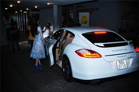 Đặc biệt, cô bước xuống từ siêu xe Porsche màu trắng sang trọng, thay vì chiếc BMW trước đó cũng khiến nhiều người tò mò.