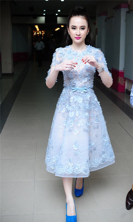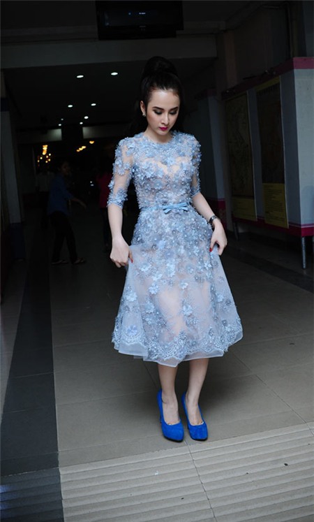 Tối 9/6, Angela Phương Trinh lần đầu xuất hiện sau một tuần sóng gió vì scandal nói dối về chuyện học tập. "Bà mẹ nhí” xuất hiện rạng ngời trong chiếc đầm kín đáo và sang trọng. Cô luôn cười tươi tắn và rất tự tin khi tạo dáng nhìn thẳng vào ống kính, thay vì né tránh hay ngại ngùng như nhiều suy nghĩ. Trông Phương Trinh gầy đi ít nhiều so với lần xuất hiện gần đây.