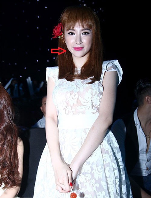 Cằm của Angela Phương Trinh khi nhìn nghiêng bị lồi ra khá rõ.