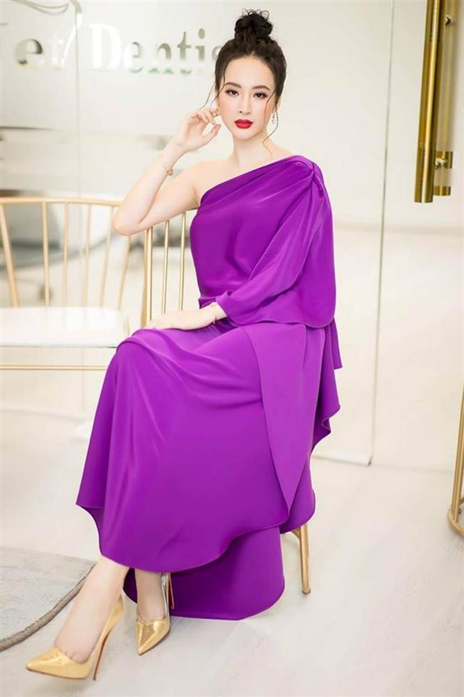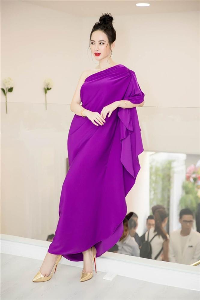 Diện bộ váy được thiết kế lệch vai màu tím khá kín đáo, Angela Phương Trinh vẫn quyến rũ "gây thương nhớ" cho người đối diện thay vì mặc đồ khoe triệt để da thịt.