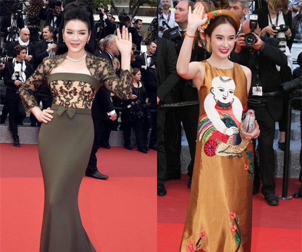 Trong khi Lý Nhã Kỳ đã nhiều năm tham dự sự kiện lớn thì đây lại là lần đầu Angela Phương Trinh được sải bước trên thảm đỏ danh giá nhất hành tinh này. Tuy mới tới tham dự LHP Cannes lần đầu nhưng Angela Phương Trinh đã trở thành cái tên hot tạo được dấu ấn riêng cho mình với truyền thông khi xuất hiện trên thảm đỏ với bộ trang phục độc đáo váy lụa họa tiết tranh đông hồ và bộ váy biển cả.