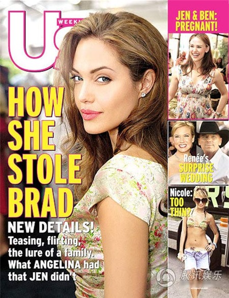 9. Tháng 5/2005, một bên là cuộc sống gia đình với 3 thành viên đã bắt đầu xuất hiện giữa Pitt và Jolie, còn một bên là Aniston một mình một bóng, sự khác biệt vô cùng lớn giữa hai bên là điêu mà US Weekly đang cố gắng tạo dựng.