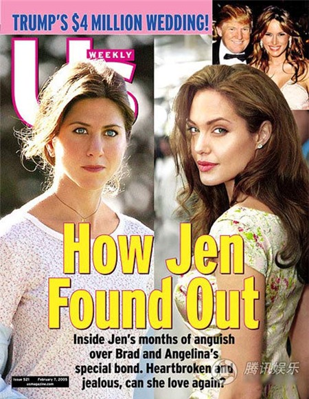 8. Tháng 4/2005, kẻ thứ ba chính thức chiến thắng khi xuất đầu lộ diện trong chuyện tình cùng ông Smith. Chuyện tình lãng mạn giữa Pitt và Jolie giờ đây trở thành đề tài nóng hổi của báo chí và truyền thông thế giới, đồng thời chính thức quãng thời gian đau khổ nhất mà Aniston phải chịu đựng. Theo đuổi và kiếm tìm hạnh phúc, tình yêu không có gì là sai trái, tuy nhiên làm tổn thương một người khác thì điều này vẫn có vẻ như làm người đời thật khó chấp nhận, nhất là trong chuyện tình giữa Angelina Jolie - kẻ thứ 3 với Brad Pitt.