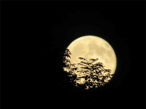 "Trăng tròn hạ chí" được quan sát qua rặng cây lúc 22h30 tại Norfolk, Anh. Ảnh:GuardianWitness
