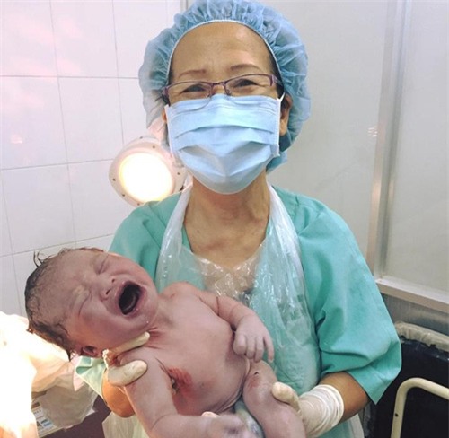 Bà nội là bác sĩ tự tay đỡ đẻ đón cháu trai chào đời. . |