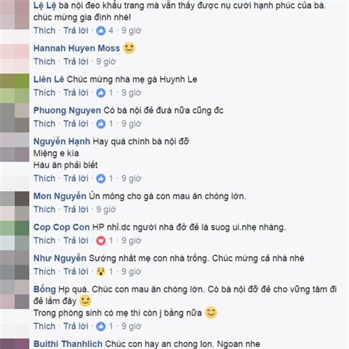 Facebooker Minh Trang bình luận: “Mẹ này hạnh phúc quá. Đón con yêu khỏe mạnh lại được chính bà nội đỡ đẻ, còn gì tuyệt vời hơn. Bà nội đeo khẩu trang mà vẫn thấy được nụ cười hạnh phúc của bà. Chúc mừng gia đình nhỏ của bạn!”