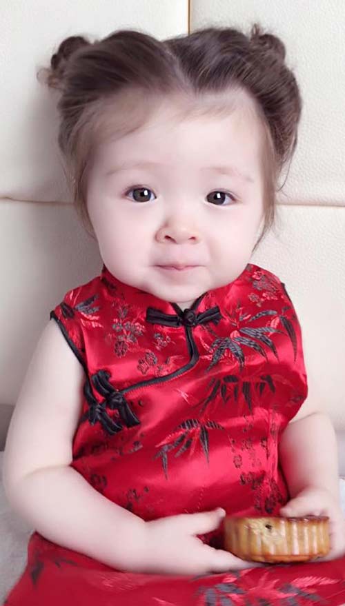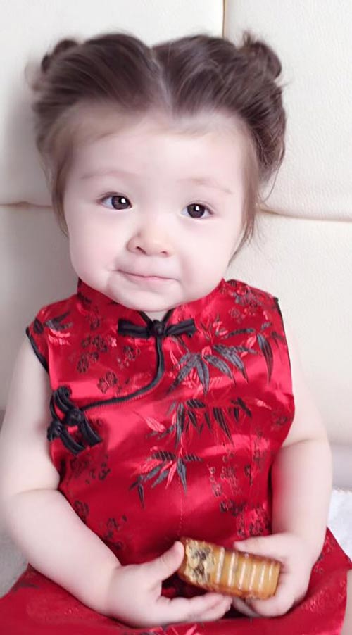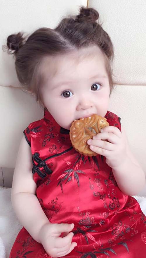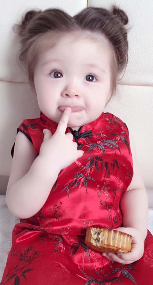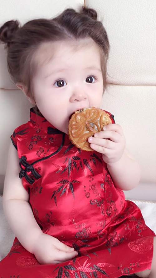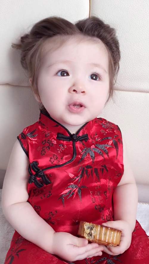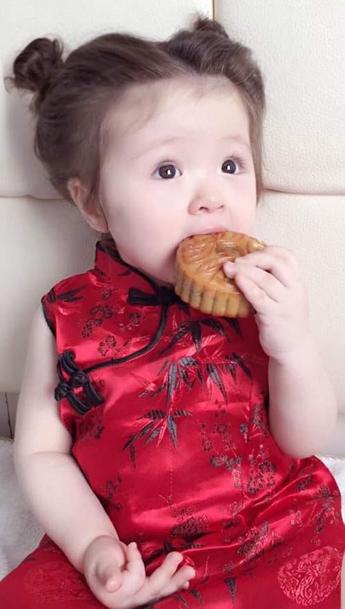 Gần Tết trung thu, Elly Trần khoe ảnh con gái trong bộ váy đỏ ngồi ăn bánh nướng khiến dân mạng “liêu xiêu”.
