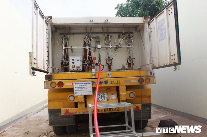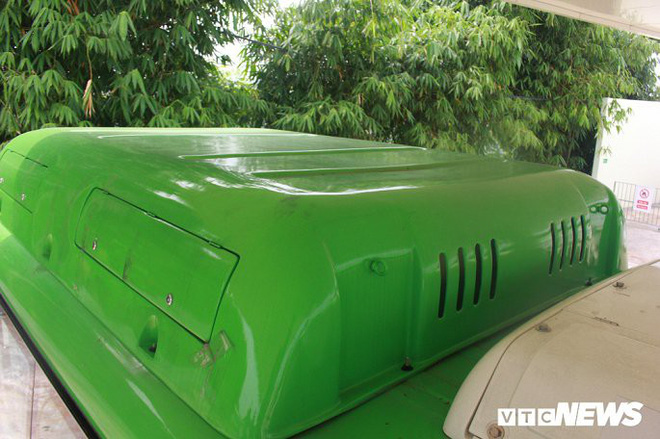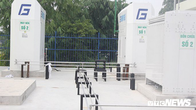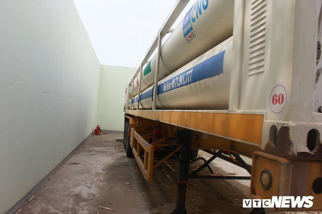 Khí sau khi được bơm từ trụ nạp sẽ theo đường ống dẫn lên 8 bình chứa khí CNG ở trên nóc xe.