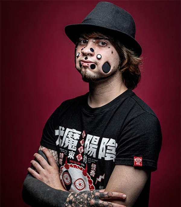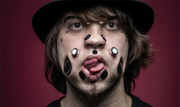 Người nghệ sĩ này đã bấm lỗ lần đầu năm 13 tuổi – lúc đó chỉ là “một chiếc khuyên tai bình thường. Tuy vậy, từ đó anh đã nuôi nấng một sở thích kì quái về việc tạo ra những thay đổi trên cơ thể, và anh đã thú nhận là mình đã bị “nghiện” thú vui độc đáo này.