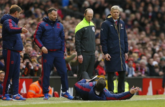 Đó là tình huống ông thầy người Hà Lan khiếu nại với tổ trọng tài sau khi chứng kiến tiền đạo Sanchez ăn vạ trong vòng cấm kiếm phạt đền trong trận M.U thắng nghẹt thở Arsenal 3-2 ở vòng 27 Giải Ngoại hạng Anh. Không chỉ phản ứng bằng lời nói, ông Van Gaal còn diễn lại màn đóng kịch của tiền đạo Arsenal khiến khán giả trên sân và người xem truyền hình trên khắp thế giới không thể nhịn cười.
