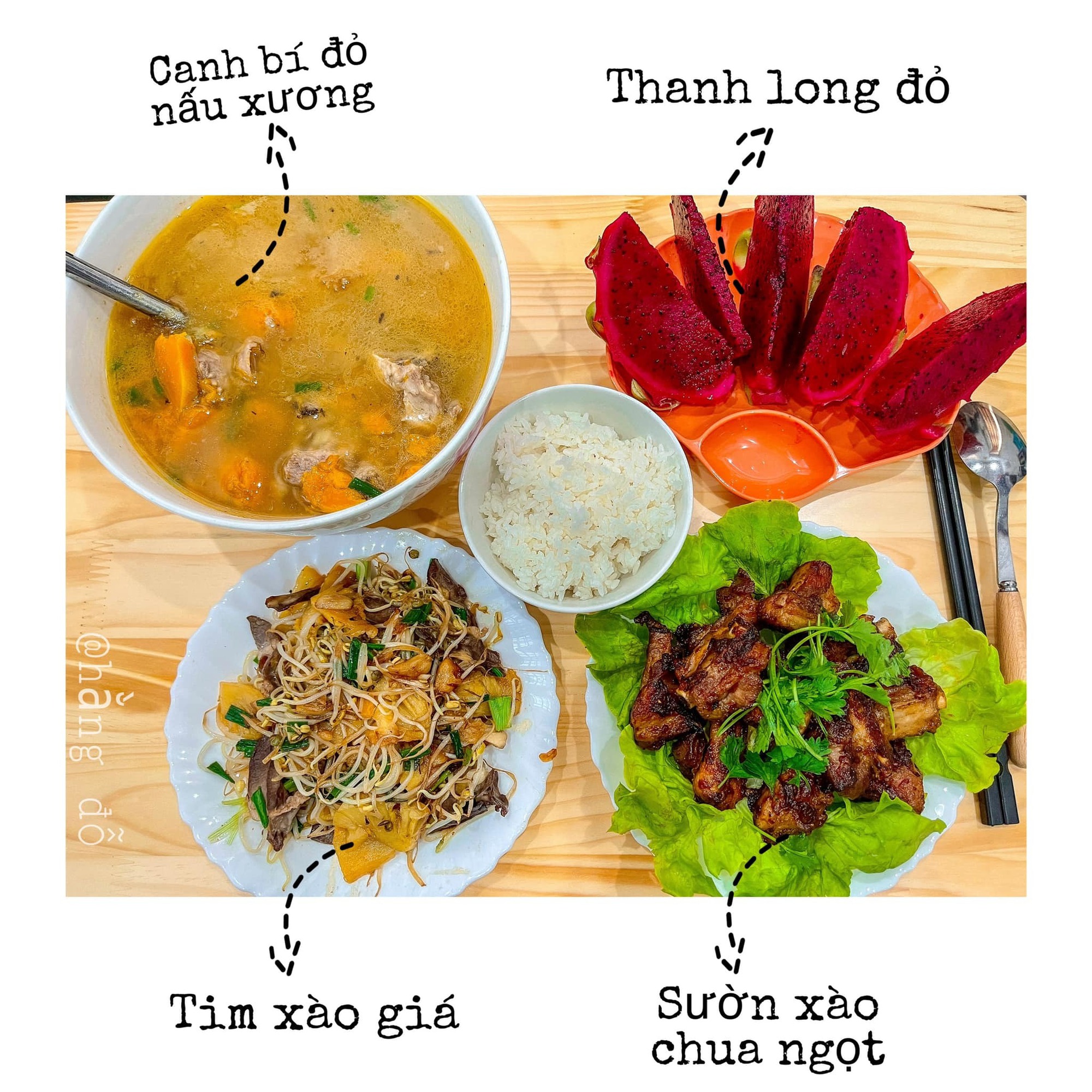 Nhìn vào mâm cơm có thể thấy, các món ăn đều được thay đổi theo từng bữa, tránh lặp lại khiến bữa ăn trở nên nhàm chán. Mỗi bữa cơm sẽ có từ 4-5 món, bao gồm món mặn như thịt, tôm, gà… và rau xanh, trái cây tráng miệng.