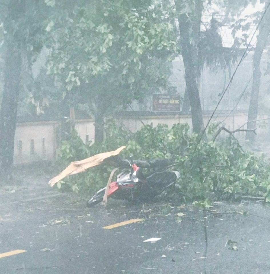 Sau khi bão số 5 đổ bộ đã gây ra mưa to, gió giật kinh hoàng, nhiều cây xanh cổ thụ đổ ngã la liệt trên đường, hàng trăm nhà dân tốc mái.