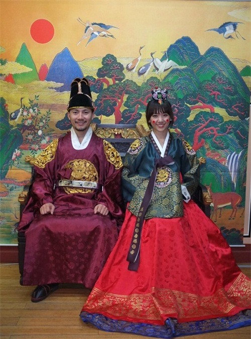 | Hari và Tiến Đạt cũng từng thực hiện bộ ảnh cưới trong trang phục Hàn Quốc. |