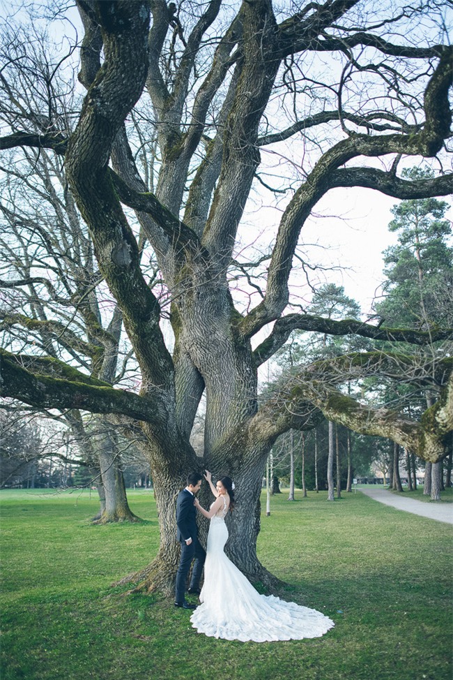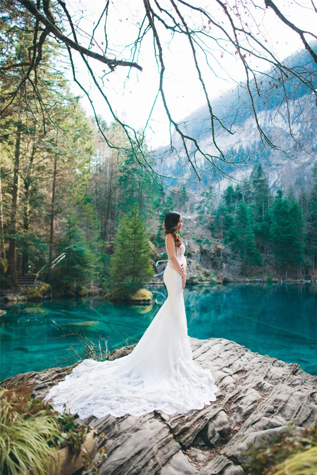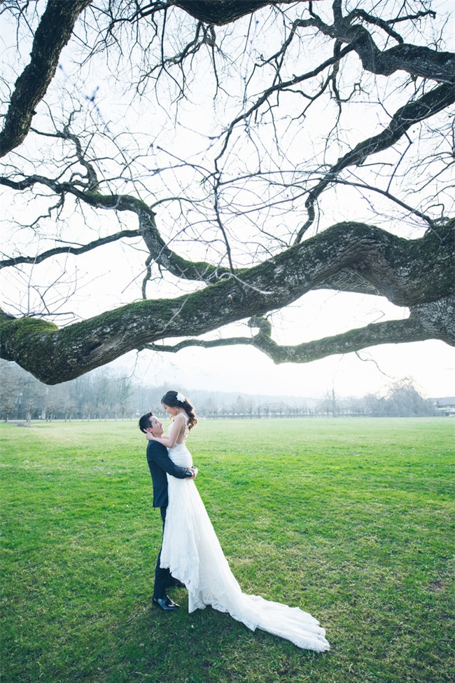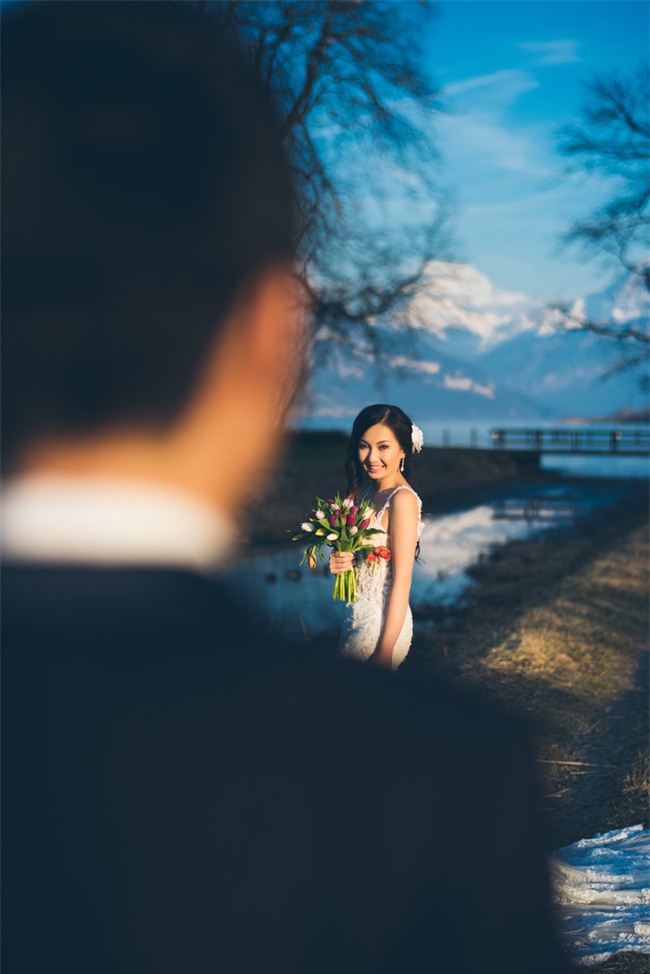Bộ ảnh cưới được thực hiện vào tháng 3 vừa qua, cũng là lúc thời tiết, thiên nhiên Thụy Sĩ chuyển từ đông sang xuân.