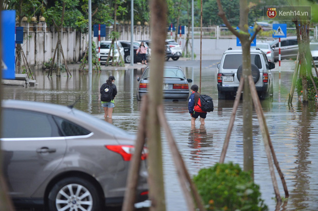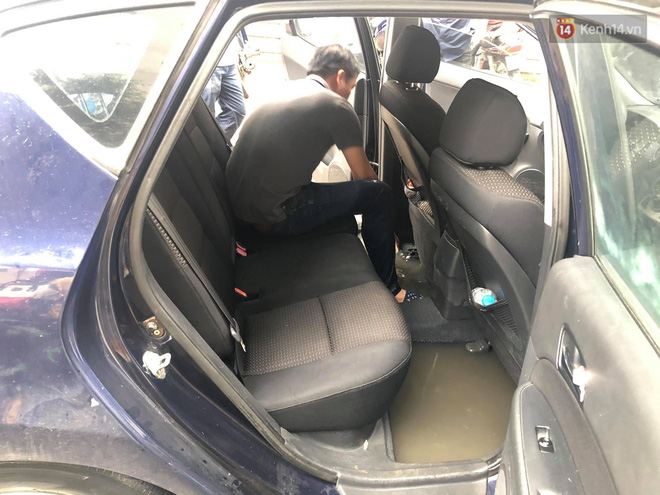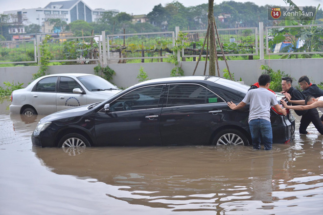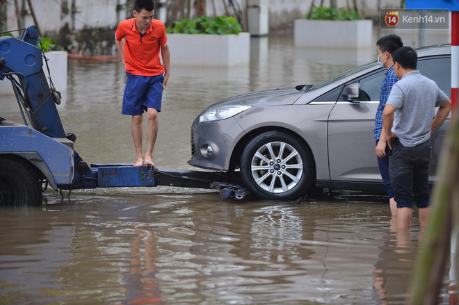 Đến khoảng 13h00 cùng ngày, nước vẫn chưa có dấu hiệu rút, có khoảng 15 xe ô tô con bị ngập đang được lực lượng chức năng kéo ra khỏi khu vực ngập lụt