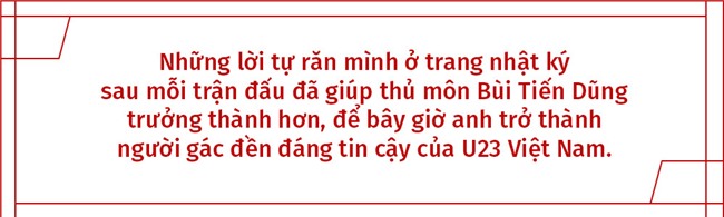 Trận hòa 0-0 có phần may mắn giúp đội nhà giành vé vào bán kết. Tuy đội nhà giữ sạch lưới nhưng Tiến Dũng không hài lòng với bản thân mình. Anh cần mẫn ghi lại những thiếu sót của bản thân bằng những câu chữ giản dị, không dài dòng nhưng đủ để hiểu mình đang ở đâu. Thủ môn là vị trí rất nhạy cảm, những liệu pháp tâm lý của HLV Park Hang-seo dù có tốt cỡ cũng chưa chắc phát huy hiệu hiệu quả nếu Tiến Dũng không biết cách tự cân bằng mình.