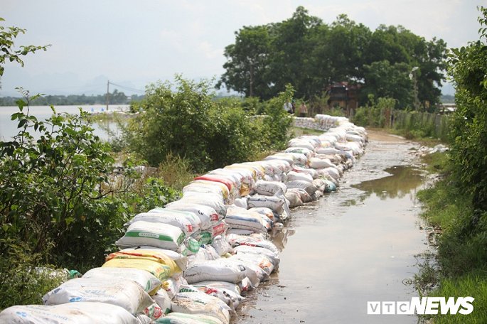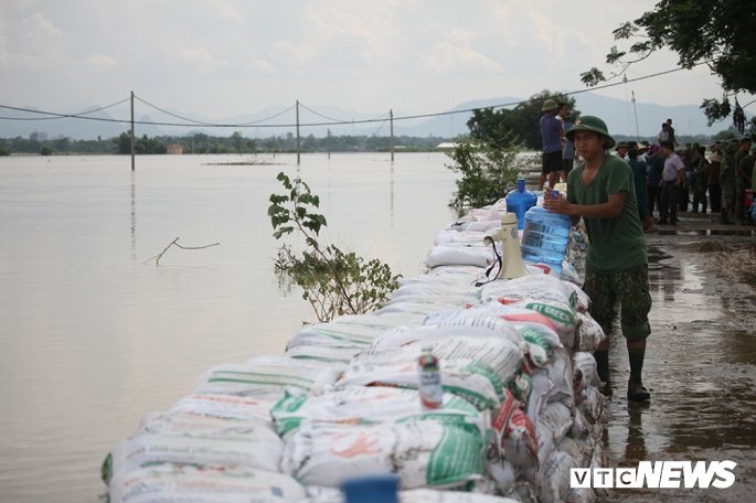 Công tác đắp bao cát tránh nước tràn đê bắt đầu từ đêm 29/7 và kéo dài trong ngày 30/7.