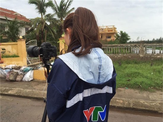 Trong hình ảnh từ clip nữ MC thời tiết của VTV đầu trần, tay cầm quyển sổ ướt đưa tin giữa cơn bão bị không ít người nhận xét "làm màu" bởi thực chất không nhất thiết phải lên sóng trực tiếp trong tình trạng thiếu an toàn như vậy.