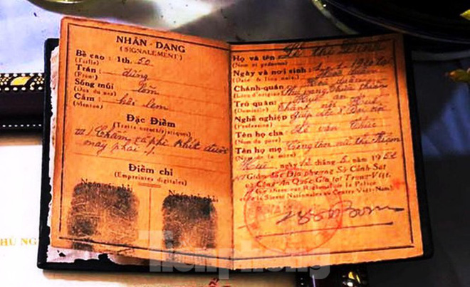 Giấy tờ tùy thân của bà Lê Thị Dinh do chế độ cũ cấp hiện vẫn còn được gia đình lưu giữ. Ảnh: Quang Phúc