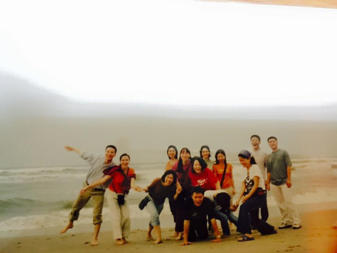 Đỗ Bạch Dương khi mới vào VTV làm việc. Chị chụp ảnh cùng các đồng nghiệp, trong đó có BTV Trần Quang Minh (áo vàng), BTV Hoa Thanh Tùng (áo đỏ).