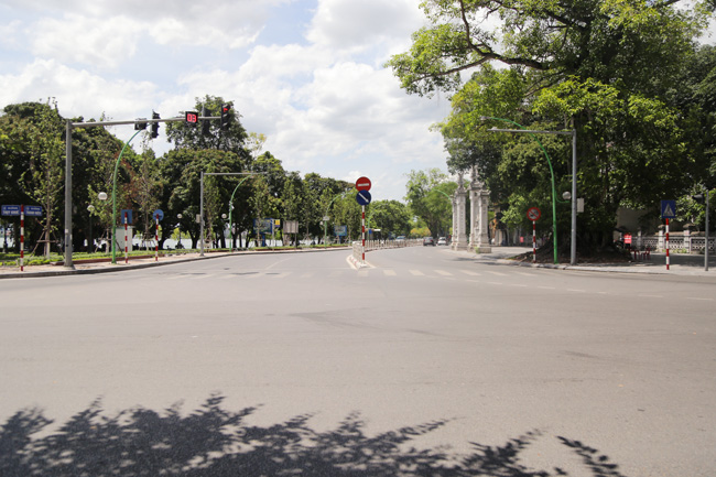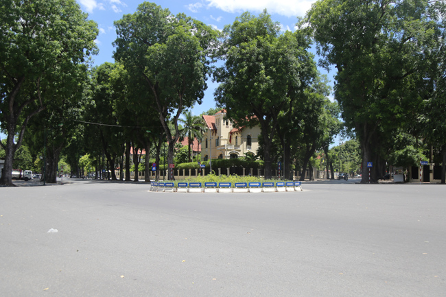12h trưa, đường Thanh Niên vắng không một bóng người.