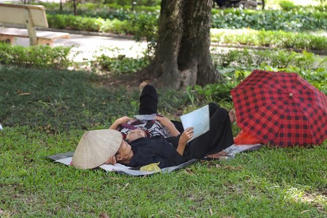 Thời điểm này, hầu hết người lao động và tiểu thương đều đổ về các vườn hoa, công viên tranh thủ nghỉ trưa nơi các bãi cỏ có bóng cây xanh mát.