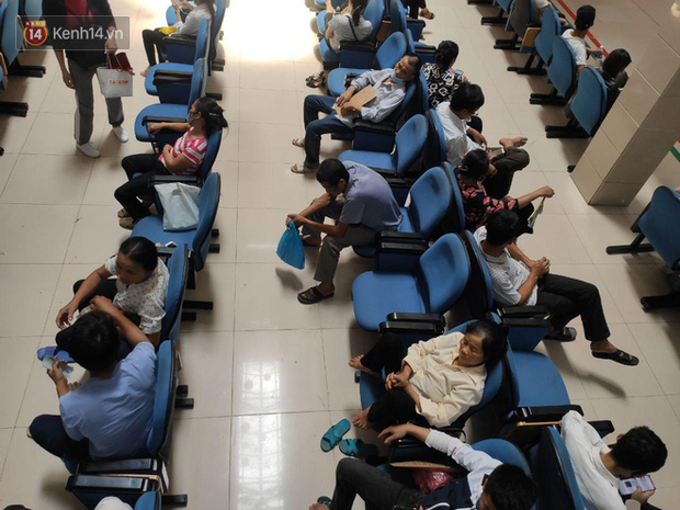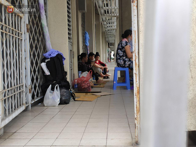 Phía bên ngoài thời tiết nắng gay gắt nhiều người gục đầu bên hàng ghế ngủ vội.