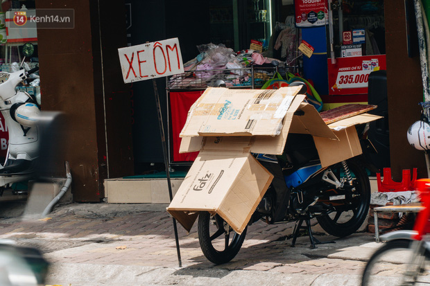 Người dân sử dụng những tấm bìa carton để phủ lên xe máy.