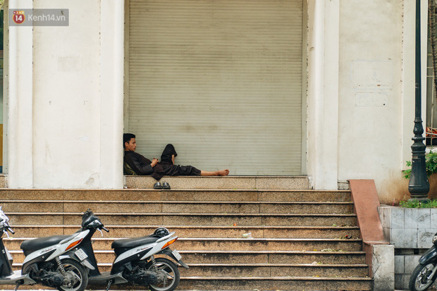 Nam thanh niên tranh thủ chợp mắt bên vỉa hè cạnh Bưu điện Việt Nam.