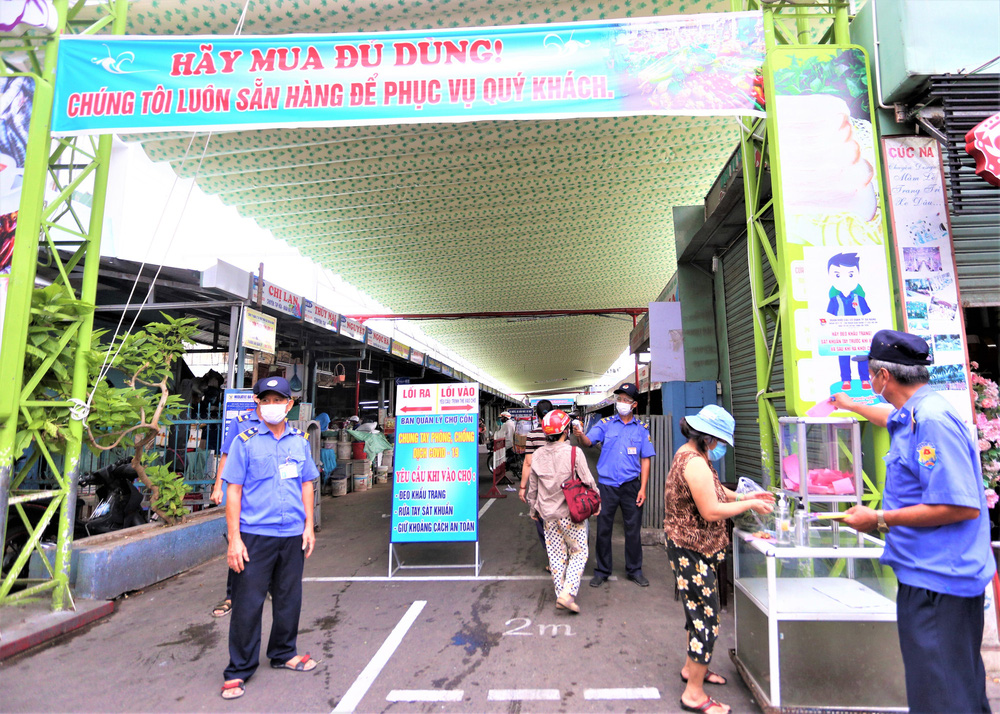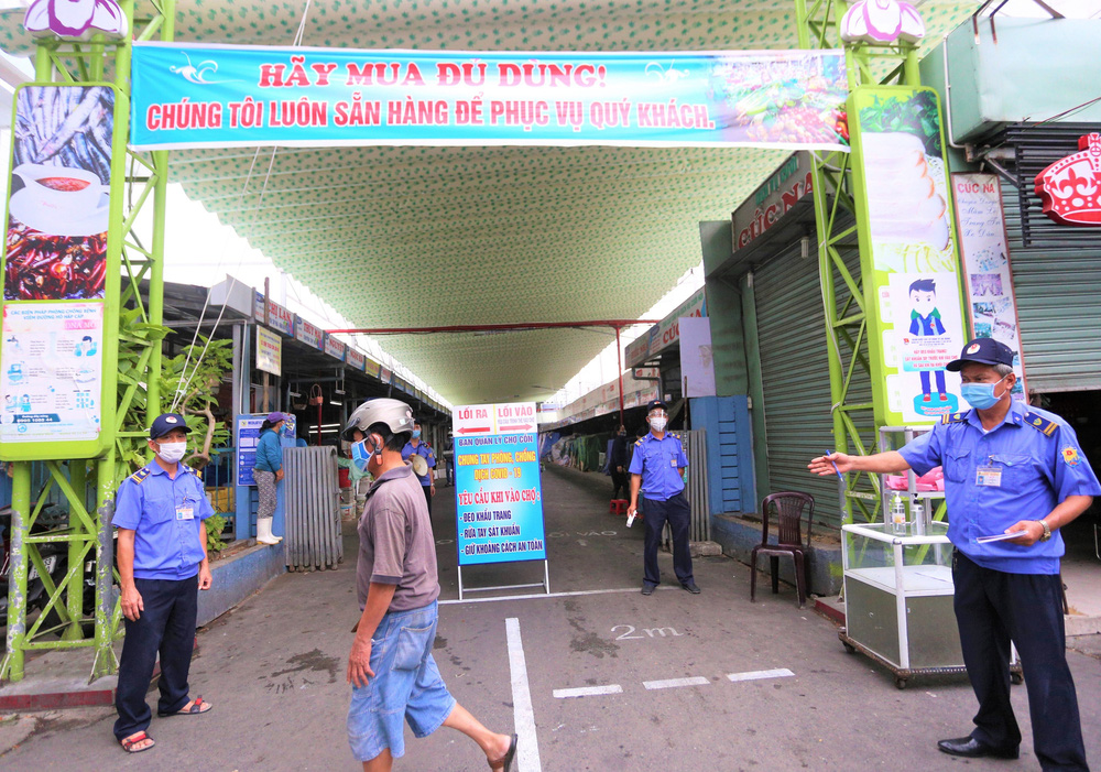 Bảo vệ và những người đi chợ luôn cố gắng giữ khoảng cách xa nhất có thể.