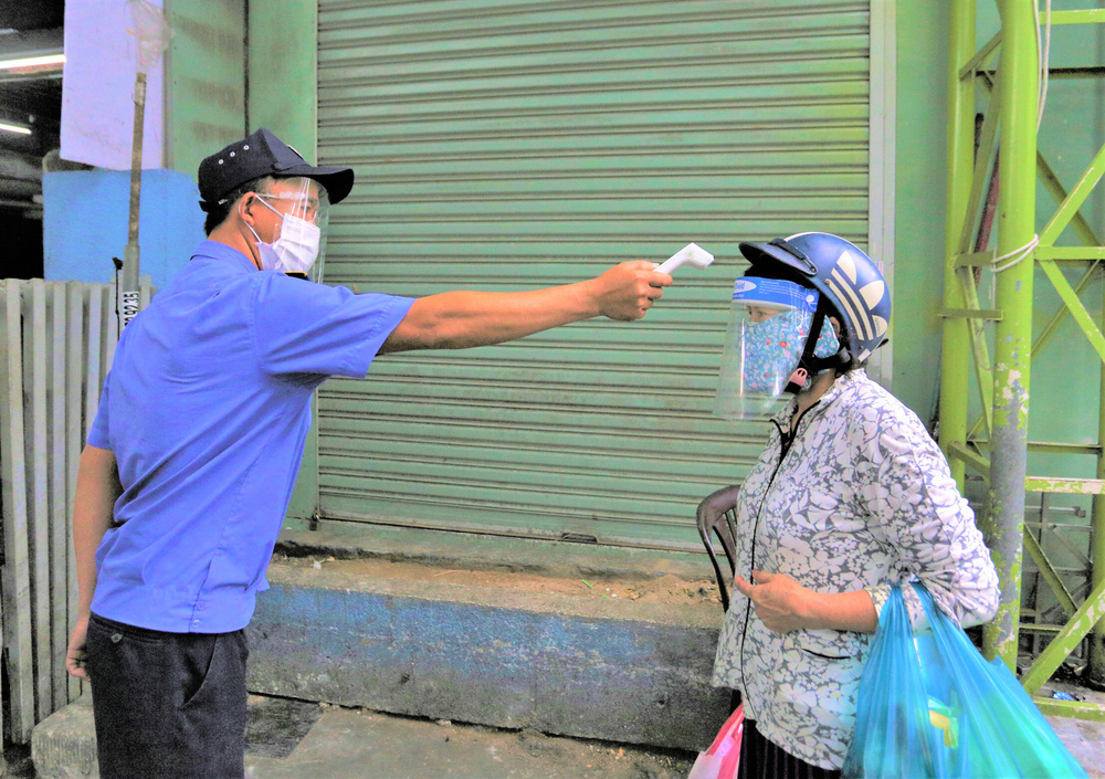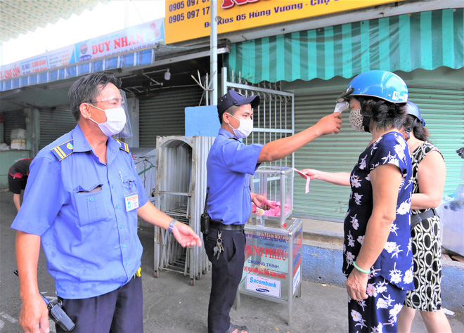 Những người có thân nhiệt quá cao cũng sẽ được mời đứng bên ngoài cổng nghỉ ngơi một lúc để đo lại. Nếu cả 2 lần nhiệt độ đều cao thì sẽ không được vào chợ.